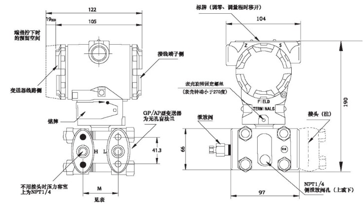 冷凝管與散熱器。測量介質(zhì)溫度應(yīng)處于電容式壓力變送器工作溫度范圍內(nèi),如超溫使用,將會產(chǎn)生較大的測量誤差并影響壓力變送器的使用壽命;在壓力變送器的結(jié)構(gòu)生產(chǎn)過程中,會對溫度影響進行測量和補償,以確保其受溫度影響產(chǎn)生的測量誤差處于準確度等級要求的范圍內(nèi)。在溫度較高的場合,可以考慮選擇高溫型壓力變送器或采取安裝冷凝管、散熱器等輔助降溫措施。